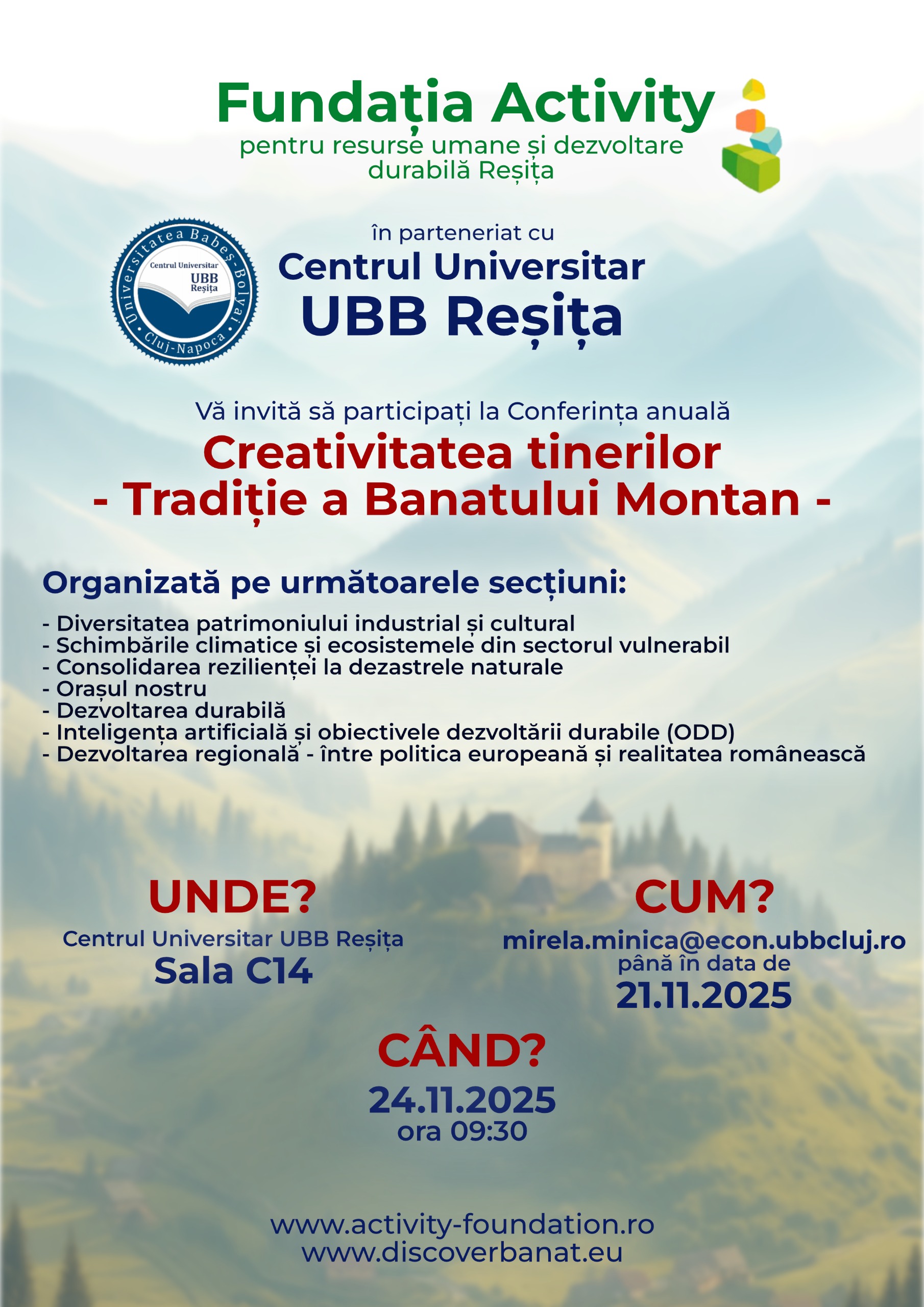 Office: 32085 Resita, Piata T.Vuia 1-4 corp E, cam E2, Caras Severin