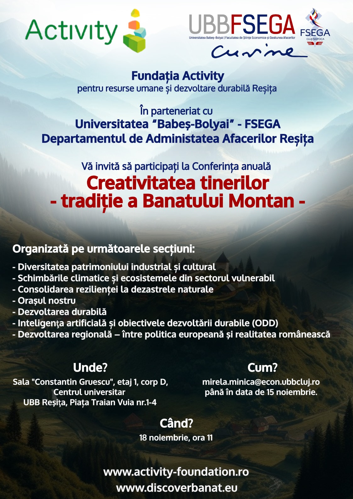 Office: 32085 Resita, Piata T.Vuia 1-4 corp E, cam E2, Caras Severin